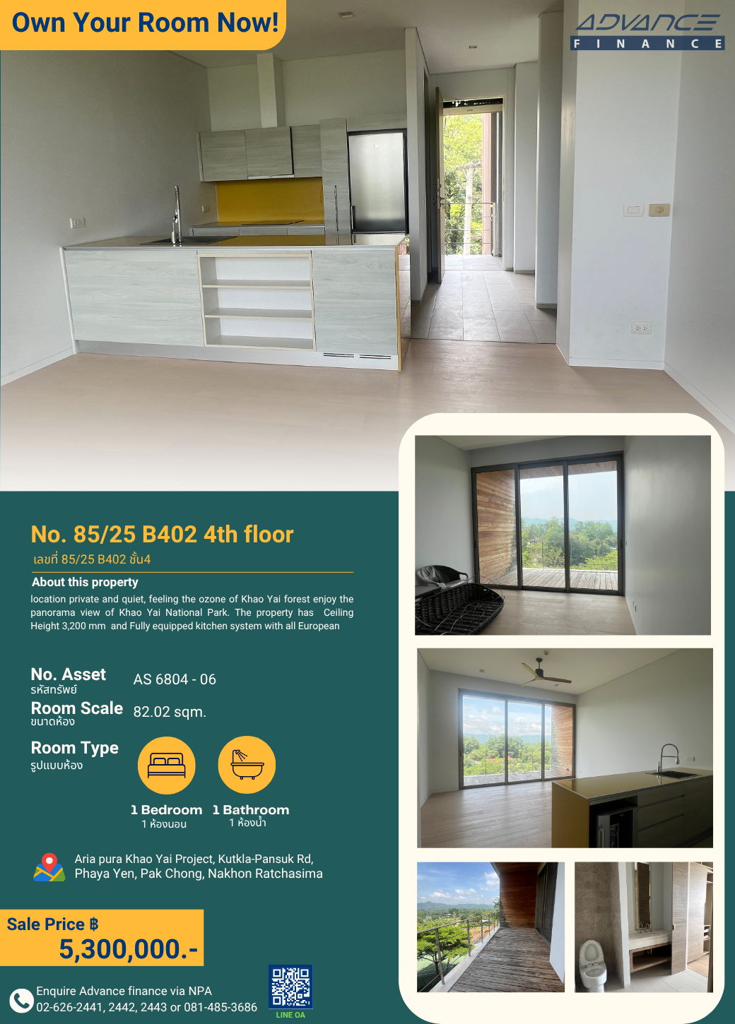 No. 85/25 B402 4th floor Aria pura Khao Yai Project, Kutkla-Pansuk Rd, Phaya Yen, Pak Chong, Nakhon Ratchasima